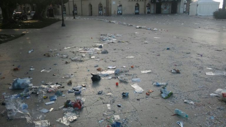 Si è presentata così Piazza Angelo Scandaliato questa mattina dopo il post Carnevale. La pulizia della piazza è scattata solo dopo le otto del mattino. E’ rientrato lo sciopero annunciato qualche giorno fa dei lavoratori della Sogeir che avevano paventato…