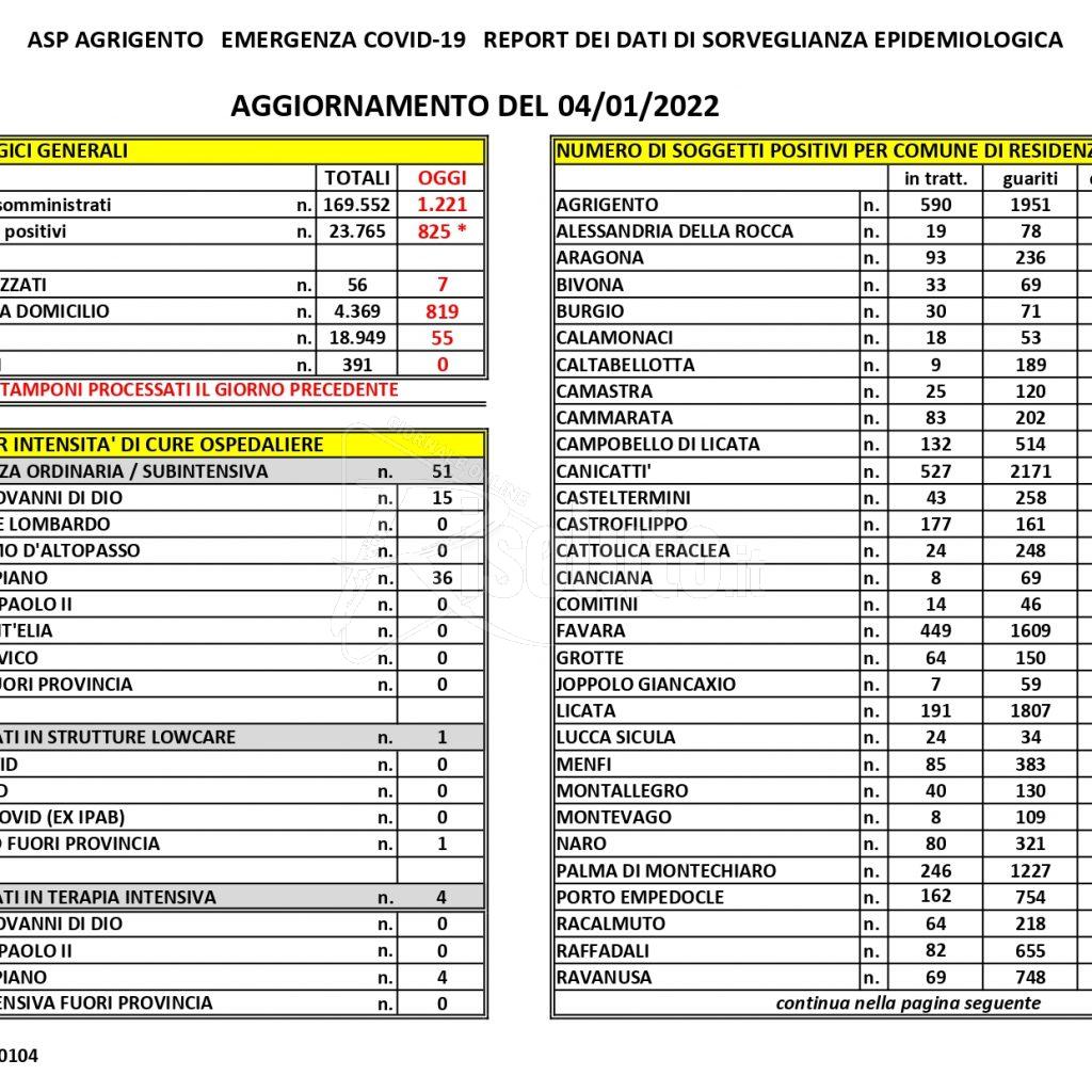 Esplosione di casi in tutta la provincia. Sono 825 indicati nel bollettino che si riferisce a giorno quattro gennaio. Sette ospedalizzati. Nessun decesso. Salgono a 51 i ricoverati in degenza ordinaria e quattro in terapia intensiva
