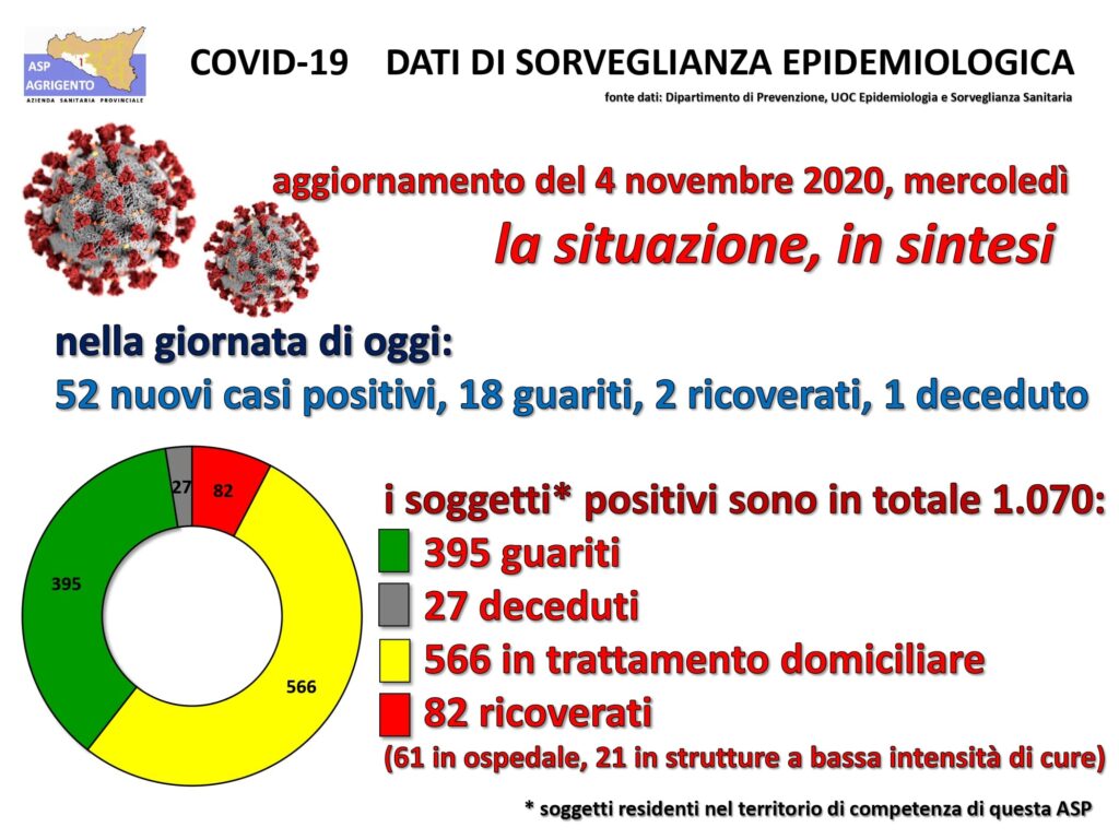 Dati Asp del giorno, 52 casi, 18 guariti, due ricoverati, 1 deceduto