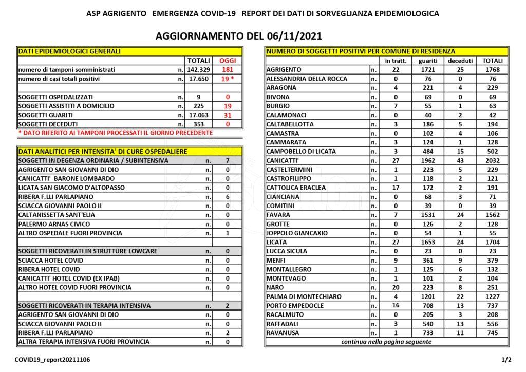 Zero decessi, zero ospedalizzazioni, trentuno guariti e diciannove nuovi casi. Un buon bollettino, l’ultimo da parte dell’Asp.