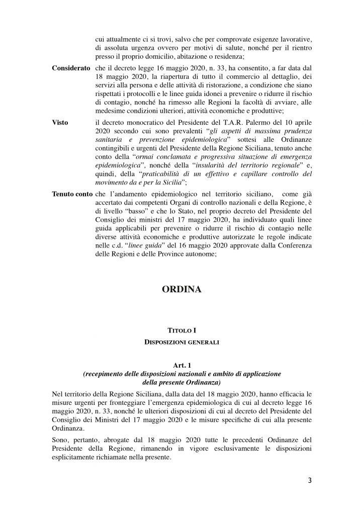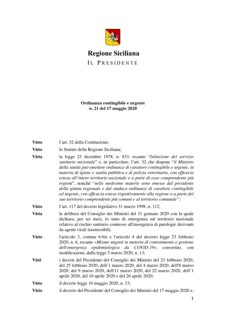 Il governatore Nello Musumeci ha firmato stasera l’ordinanza per la riapertura di domani che alla fine dell’ articolo è possibile consultare.