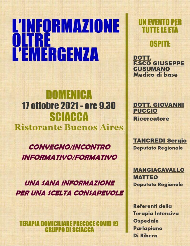 Sergio Tancredi e’ il deputato di Attiva Sicilia che oggi e’ sulle cronache di tutte le testate giornalistiche siciliane per le sue dichiarazioni contro il green pass. Ha paventato di non esibire il certificato per poter svolgere il suo ruolo di parlamentare all’Ars. Da domani, giorno 15, lo dovranno esibire anche i componenti dell’Assemblea regionale siciliana, secondo il decreto nazionale. E’ dello stesso avviso anche Matteo Mangiacavallo, il deputato saccense che qualche mese fa avevo invocato la privacy a domanda riguardo la sua vaccinazione. Entrambi i deputati, che condividono la stessa parabola politica all’Ars: da ex grillini al gruppo d’appoggio del governatore Musumeci, sono le “guest star” annunciate del convegno/incontro promosso domenica 17 ottobre a Sciacca dal gruppo “Terapia domiciliare precoce Covid 19” che tra i fondatori annovera anche esponenti del posto dichiaratamente “No vax”. Il titolo dell’incontro di informazione e formazione, che così come si legge nella locandina e’ aperto a tutti e a persone di qualsiasi eta’, si intitola “L’informazione oltre l’emergenza” e si svolgerà presso un noto ristorante di Sciacca.