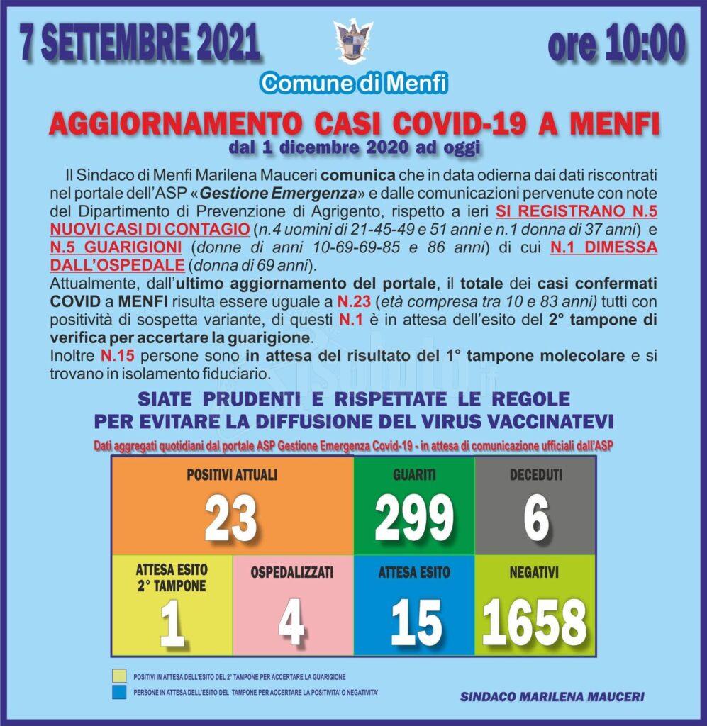 Sono stabili a ventitré i nuovi casi Covid a Menfi, anche se sono cinque i nuovi casi di positività registrati . Quattro uomini di età tra i 21 e i 51 e una donna di 37. Altre quindici persone si trovano in isolamento in attesa dell’esito del tampone. Sono quattro gli ospedalizzati.