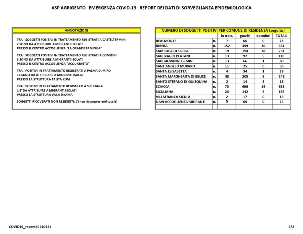 Sono novantatre’ i nuovi positivi in provincia di Agrigento secondo l’ultimo bollettino dell’Asp, sette i nuovi ospedalizzati, due decessi e 104 guariti.