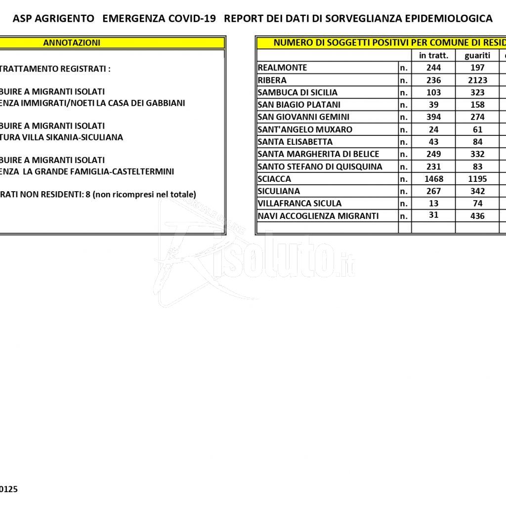 Centonove casi riportati su Sciacca rispetto il bollettino delle ventiquattro ore prima. Volano i positivi a 1468 casi. Va peggio ad Agrigento che ha mille positivi in più rispetto la seconda città della provincia per numero di abitanti. Stabile i casi a Menfi 312, in calo a Ribera 236.
