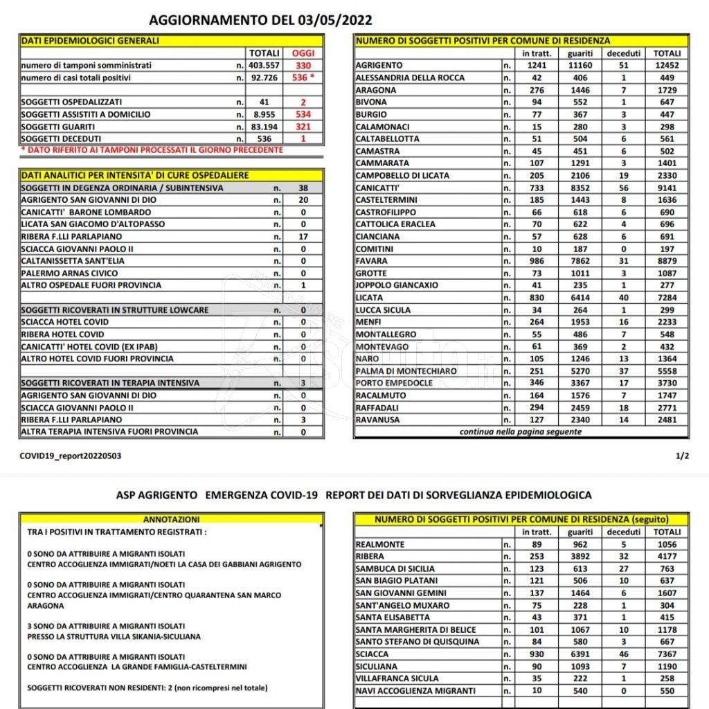 Trentotto soggetti si trovano in degenza ordinaria mentre tre sono ricoverati in terapia intensiva all’ospedale fratelli Parlapiano di Ribera.