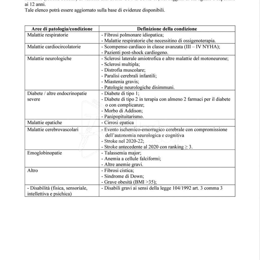 L’Hub vaccinale rimarrà chiuso la domenica. Si ricorda che – in base delle ultime indicazioni ministeriali – la somministrazione di una seconda dose di richiamo (second booster) è raccomandata a tutte le persone di età ≥ 60 anni purché sia trascorso un intervallo minimo di almeno 120 giorni dalla prima dose di richiamo o dall’ultima infezione successiva al richiamo (data del test diagnostico positivo). Una seconda dose di richiamo (second booster) è, altresì, raccomandata alle persone con elevata fragilità motivata da patologie concomitanti/preesistenti di cui alla tabella in allegato , di età ≥ 12 anni, purché sia trascorso un intervallo minimo di almeno 120 giorni dalla prima dose di richiamo o dall’ultima infezione successiva al richiamo (data del test diagnostico positivo).