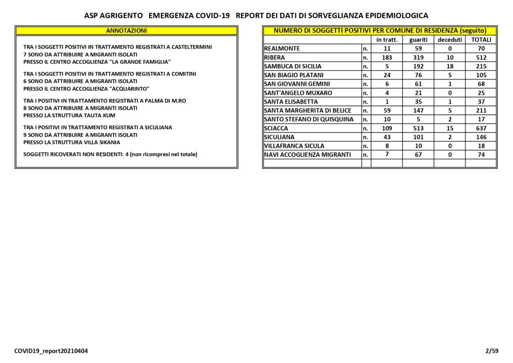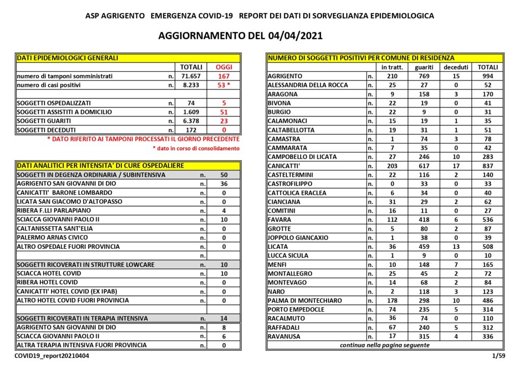 Non c’è tregua. Il numero dei positivi nell’ultimo bollettino Asp non sono definitivi ma sono registrati gia’ 53 nuovi positivi. Aumenta anche il numero dei ricoverati cinque in più soltanto oggi. Sono duecentodieci i positivi ad Agrigento, segue Canicattì e poi Ribera che tocca 183 casi. A Sciacca i contagi in risalita, 109 quelli odierni.