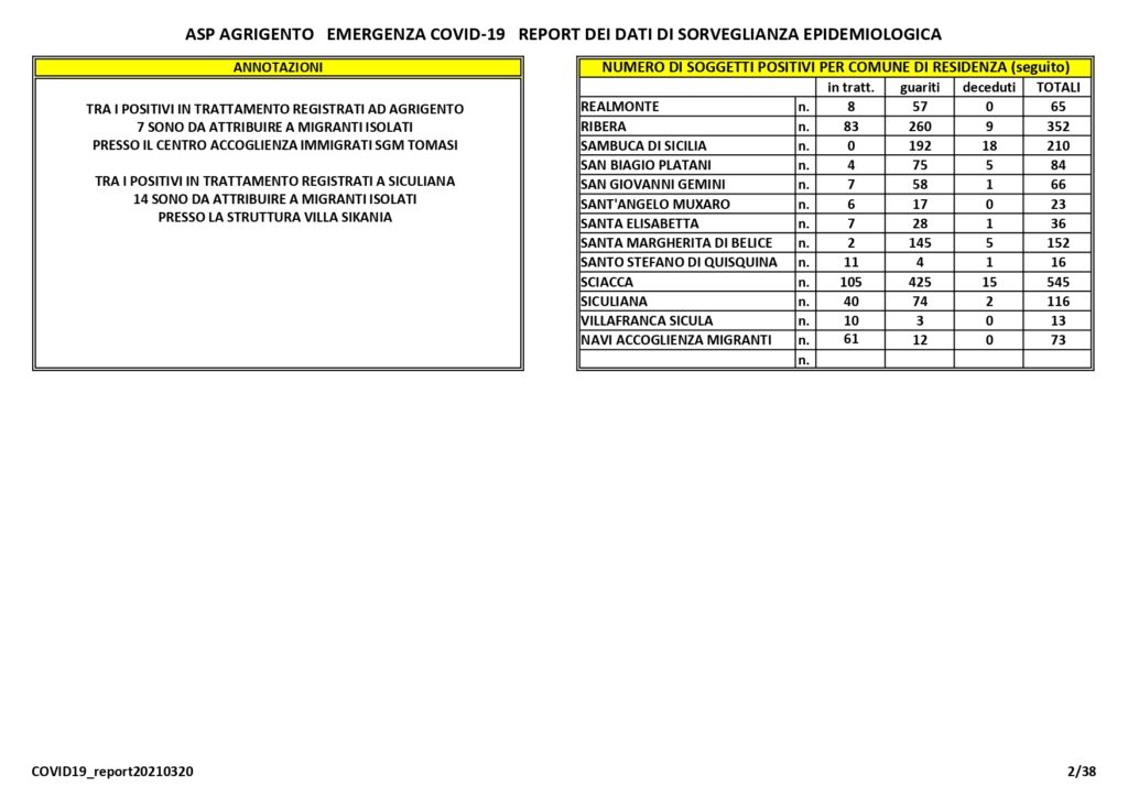 La situazione resta critica a Ribera con undici contagi in più nelle ultime ore che fanno schizzare i contagi a 83 mentre sono 84 a Palma dove ieri il dato e’ salito con più venticinque contagi.