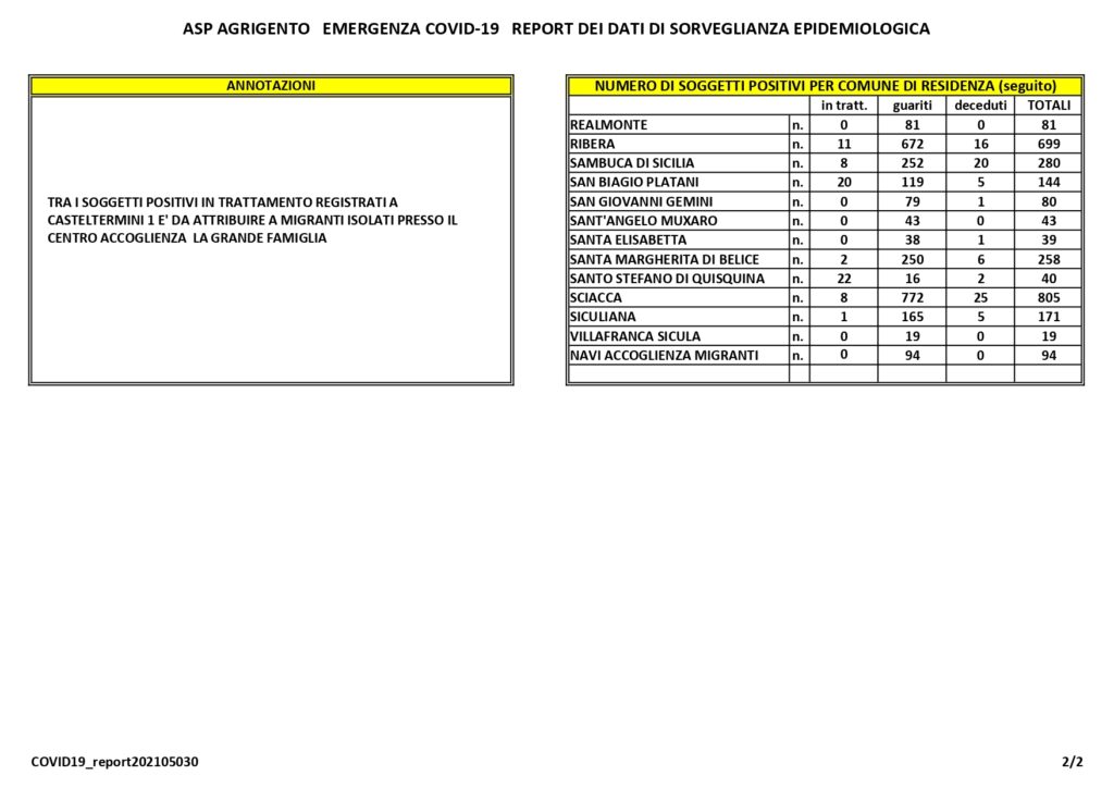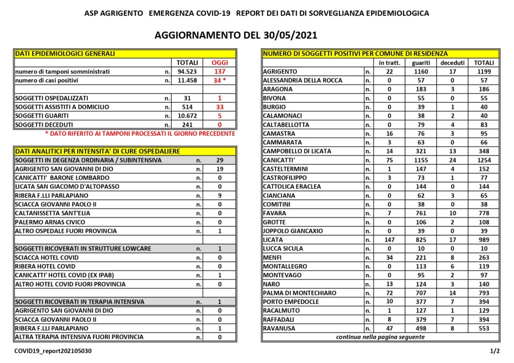 Sono trentaquattro i nuovi positivi in provincia di Agrigento. Un soggetto ospedalizzato. Zero decessi. Cinque guariti.