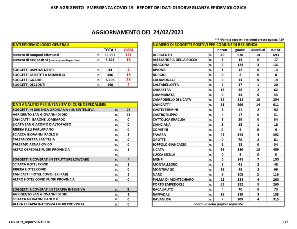 Ecco gli ultimi dati Asp sul Covid in provincia. Sono diciotto i nuovi casi su 331, quattro persone ricoverate e due decessi in provincia.