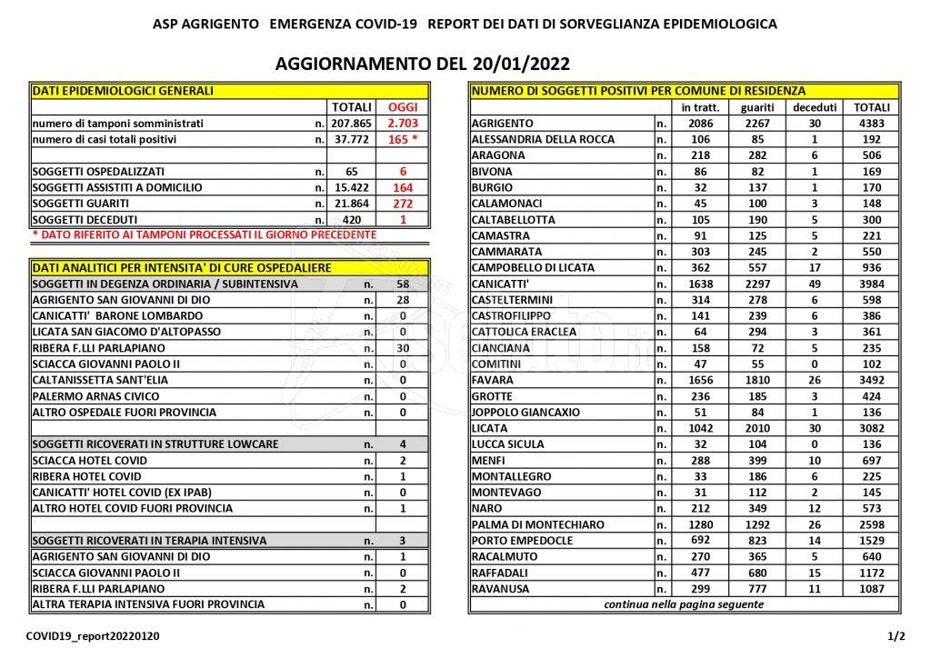 A Ribera sono 368 i soggetti positivi, in diminuzione, stabile a Sciacca con 1232. A Menfi 288, Santa Margherita 214, Sambuca 106.