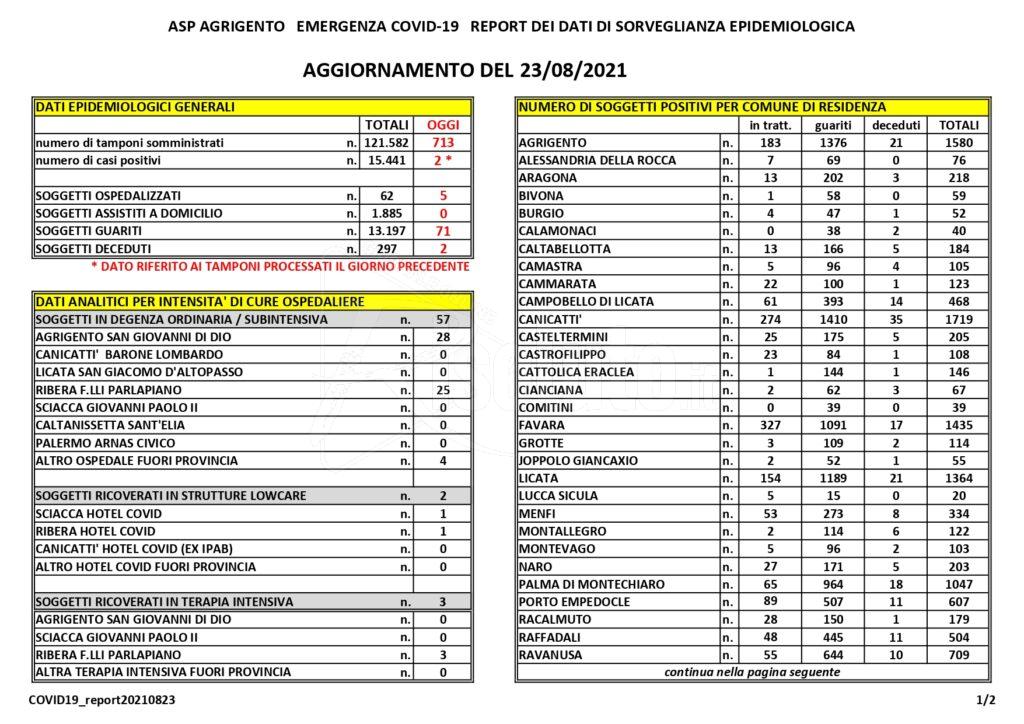 Sono soltanto due i nuovi casi in provincia nell’ultimo bollettino, due decessi e cinque ospedalizzati. Ci sono anche 71 guariti.