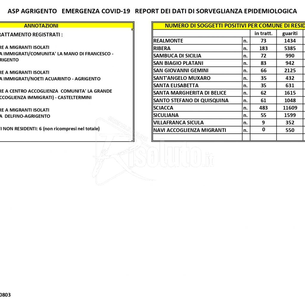 Sono 704 i nuovi casi Covid in provincia di Agrigento, 1955 i guariti, un ospedalizzato e un decesso.