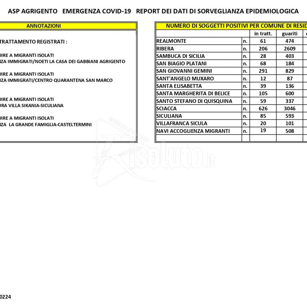 Mentre sono stati due i nuovi decessi per covid in provincia di Agrigento. Un soggetto deceduto era un anziano di Sciacca mentre l’altro di Ribera.