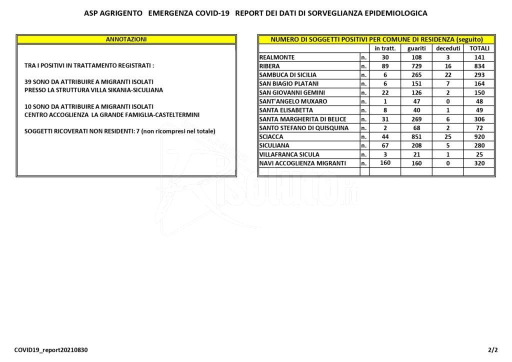 Zero nuovi casi in provincia di Agrigento, ma quattro decessi (Ultimo bollettino Asp)