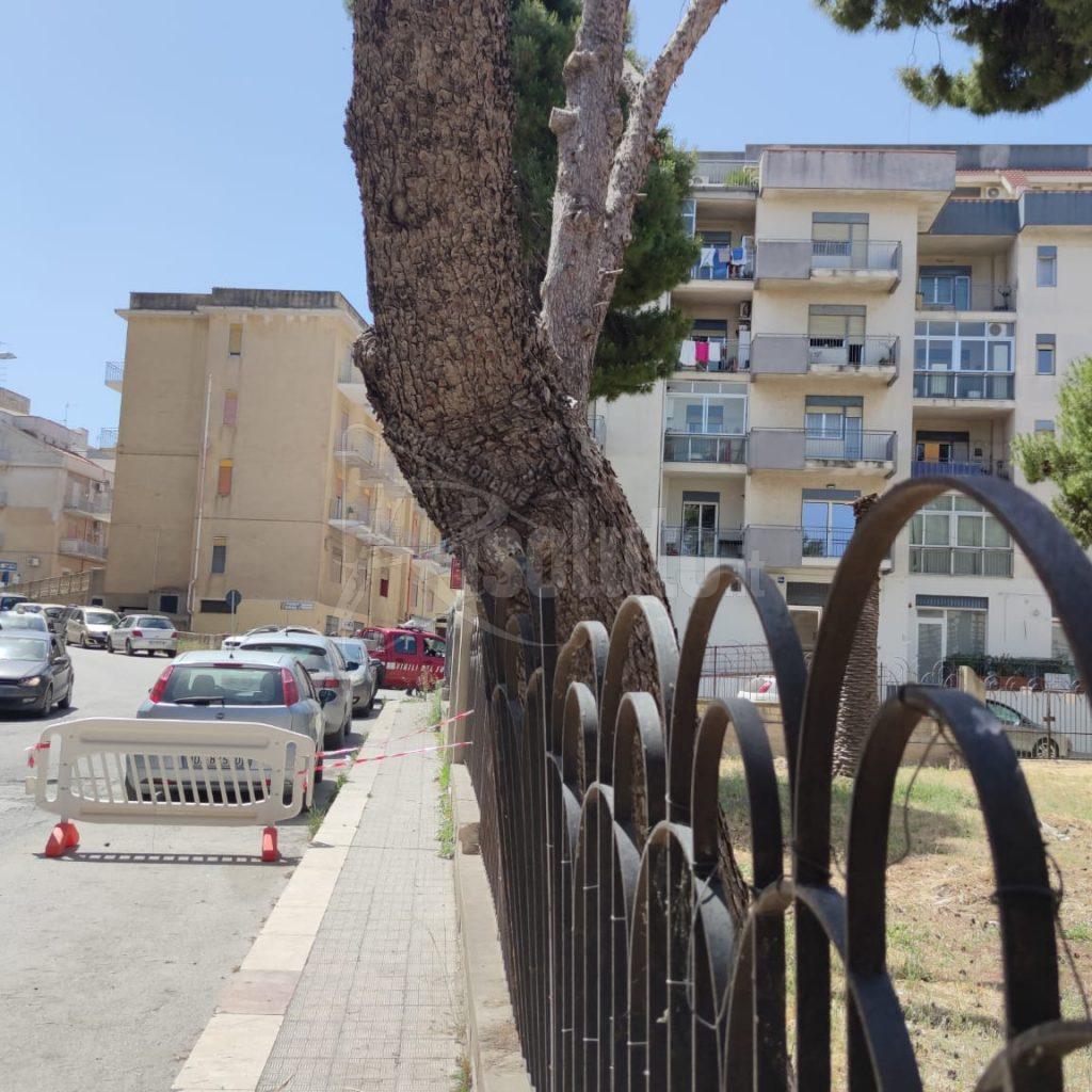 Albero pericolante in via Giotto a Sciacca, strada chiusa