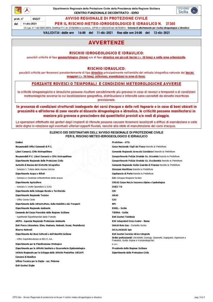Per la Sicilia saranno altre 24 ore di preoccupazione dopo la complicatissima giornata di oggi con danni e allagamenti specie nella Sicilia occidentale.