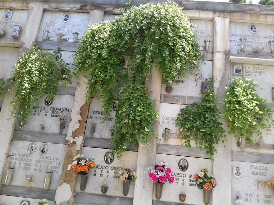 Perfino piante di capperi sono cresciute tra le lapide dei loculi del cimitero dove ormai è necessario un intervento massiccio per riportare al decoro e alla normalità il luogo.