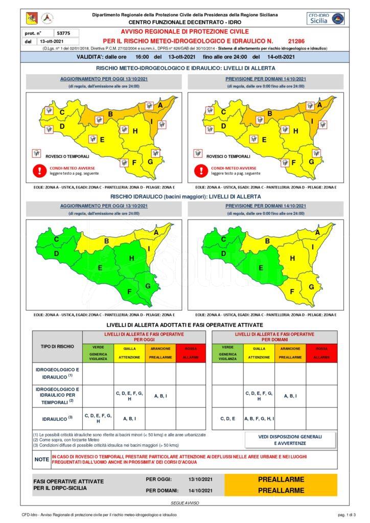 L’allerta meteo arancione e’ stata diramata nell’ zona ionica per le province di Messina, Palermo e parte del nisseno.