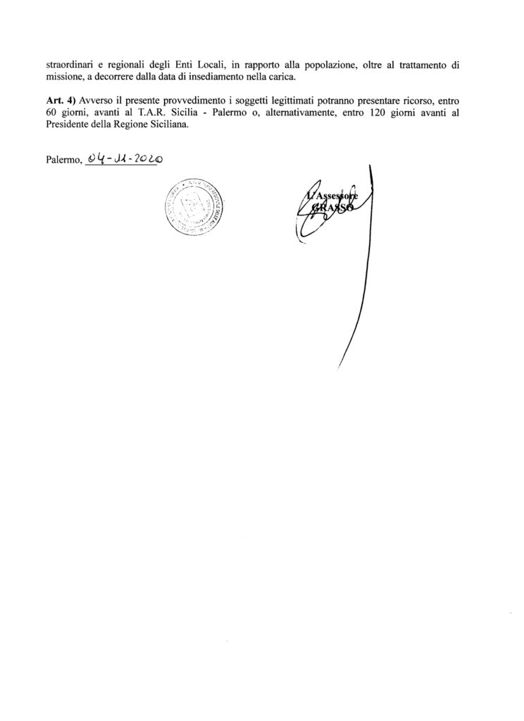 L’assessore regionale alle Autonomie Locali ha nominato il commissario straordinario in sostituzione del Consiglio comunale e decretato la sospensione dello stesso organo di rappresentanza. Il commissario e’ Pietro Valenti. Decreto atteso e arrivato in maniera celere. La mozione di sfiducia, dunque si arena definitivamente. La sindaca Valenti rimarra’ sola al comando.