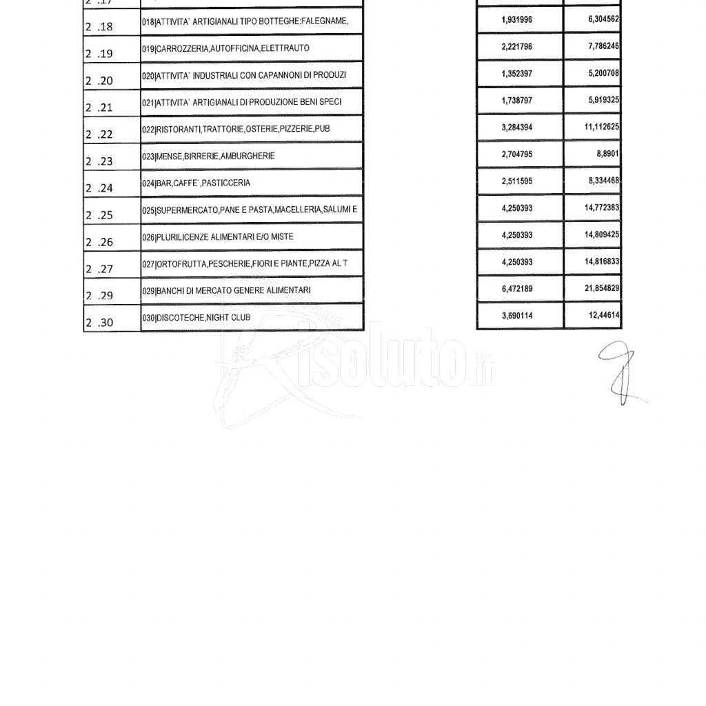 Ecco il prospetto con cui l’aumento incidera’ sui vari vari tipi di utenza e attività.