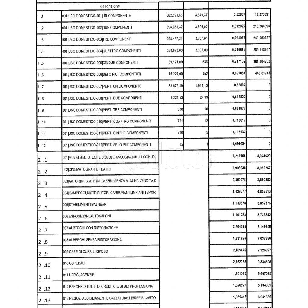 Ecco il prospetto con cui l’aumento incidera’ sui vari vari tipi di utenza e attività.