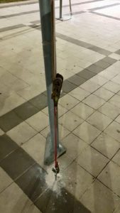 I gazebo sono stati ancorati al suolo tramite dei ganci fissati al pavimento interessato qualche anno fa da un intervento di riqualificazione. Le foto scattate nella serata di oggi sono state girate alla nostra redazione.