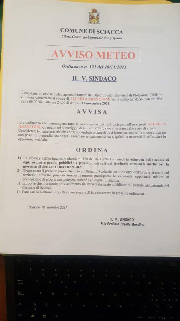 C’e’ l’ordinanza predisposta dagli uffici comunali e firmata dal vice sindaco Mondino. Le condizioni meteo restano critiche e il livello d’allerta resta arancione. Pertanto, c’è l’ordine di chiusura anche per domani per tutte le scuole di ogni ordine e grado a Sciacca.