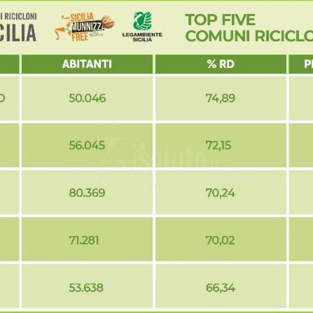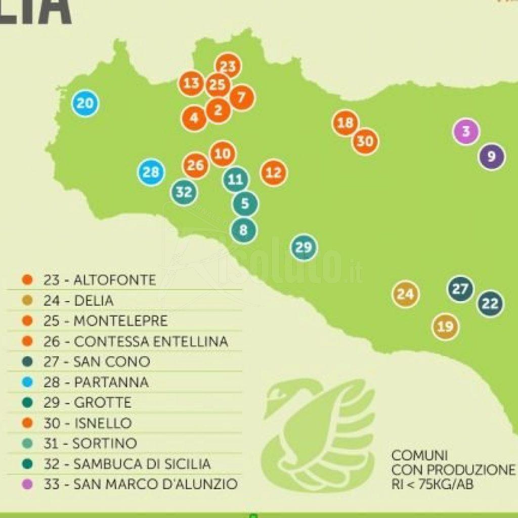 Sono 170 i comuni ricicloni in Sicilia che nel 2020 hanno raggiunto e superato il 65 per cento di raccolta differenziata e 33 i Comuni rifiuti free, quelli con una produzione di rifiuti indifferenziati minore di 75Kg /abitante.