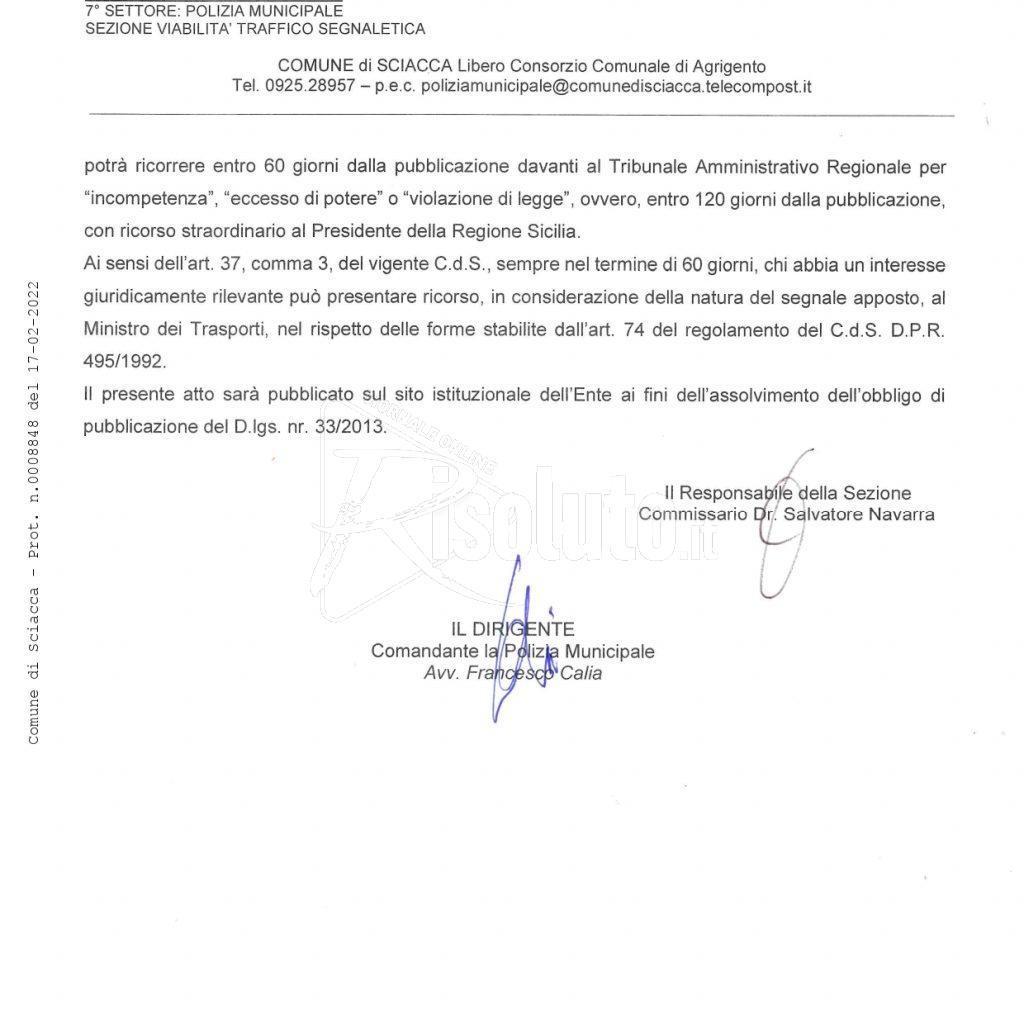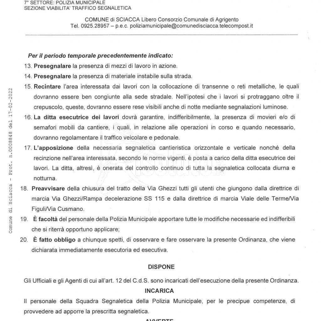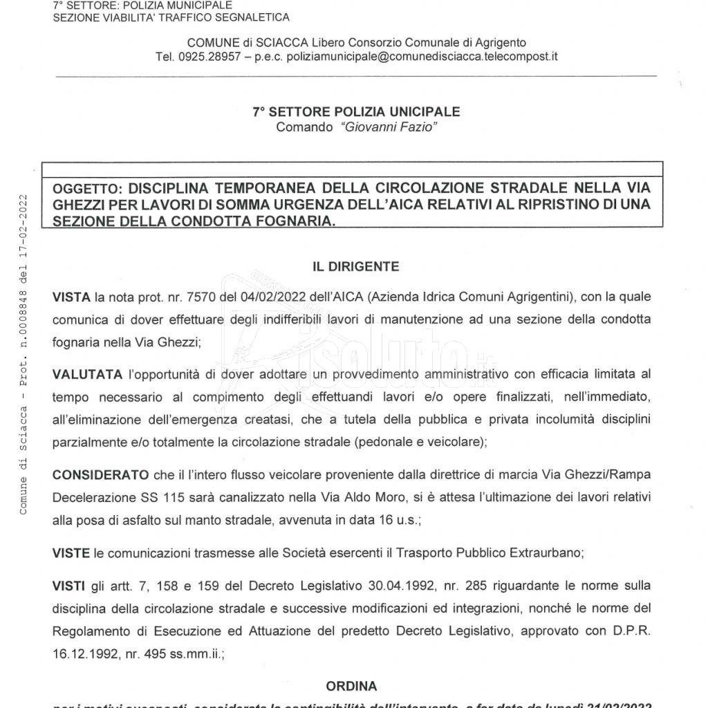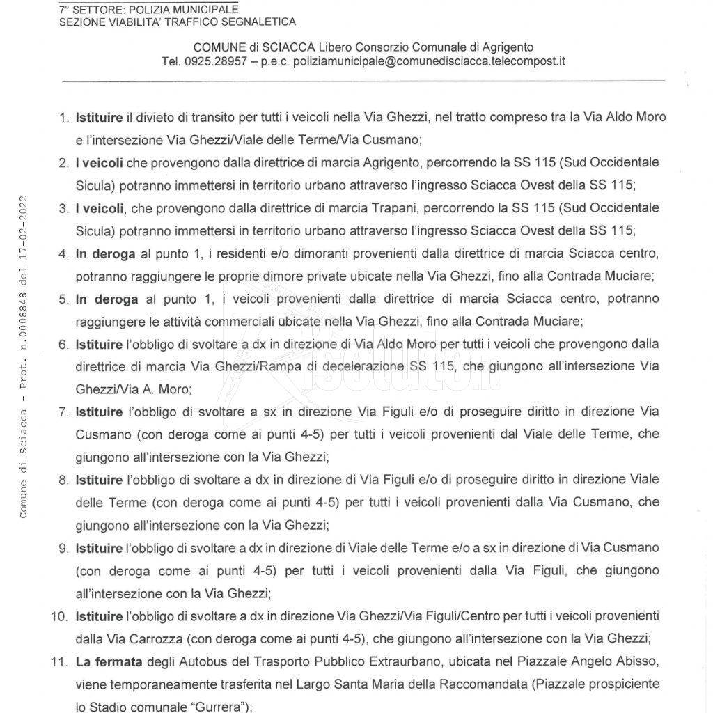 La chiusura si è resa necessaria per una consistente perdita al collettore fognario, il traffico in uscita da Sciacca sarà deviato dalle uscite poste a ovest della città. Mentre la viabilità in entrata a Sciacca verrà deviata sia sulla SS 115, con uscita Sciacca ovest, che nella via A. Moro con la percorrenza della strada per il monte Kronio.