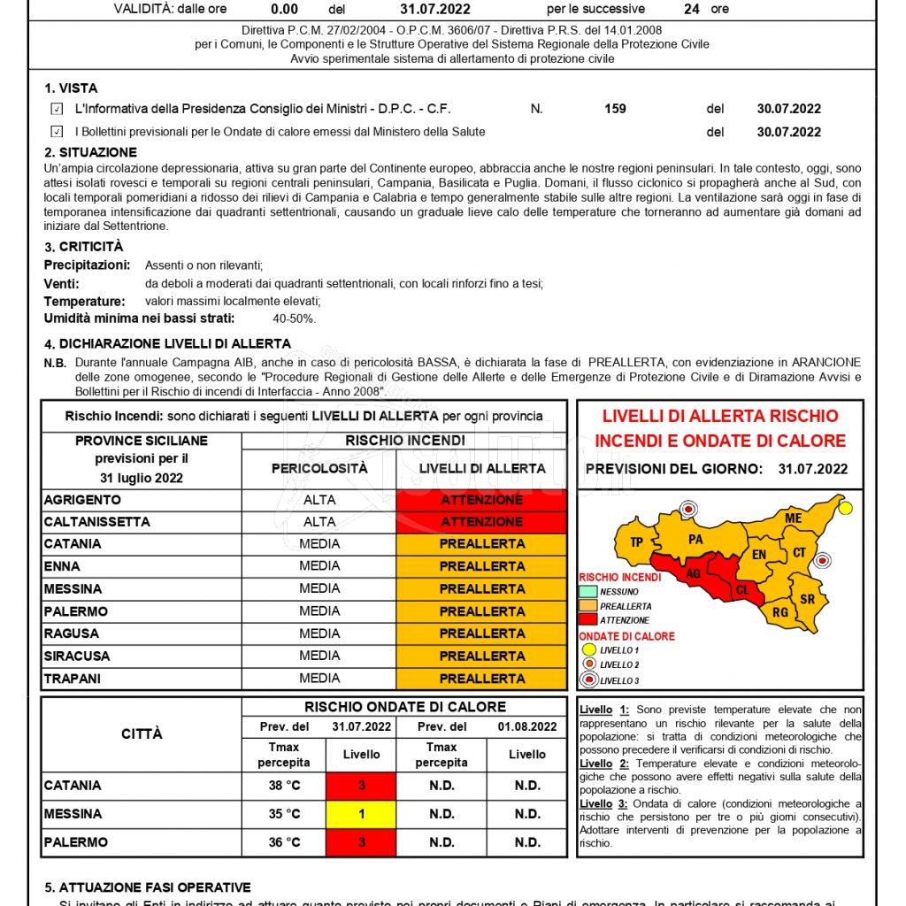 E’ di tipo 3 ossia alto per il rischio incendi nelle province di Agrigento e Caltanissetta, di livello 2 nel resto.