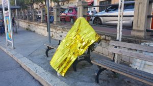 Nella città del Carnevale, i pupi di cartapesta sono di casa, ma il ritrovamento di questa mattina è assai più bislacco di un mascherone carnascialesco. Un fantoccio di carta, molto rudimentale, ma assai preciso nel messaggio, è stato ritrovato adagiato in una delle panchine di Piazza Marconi.