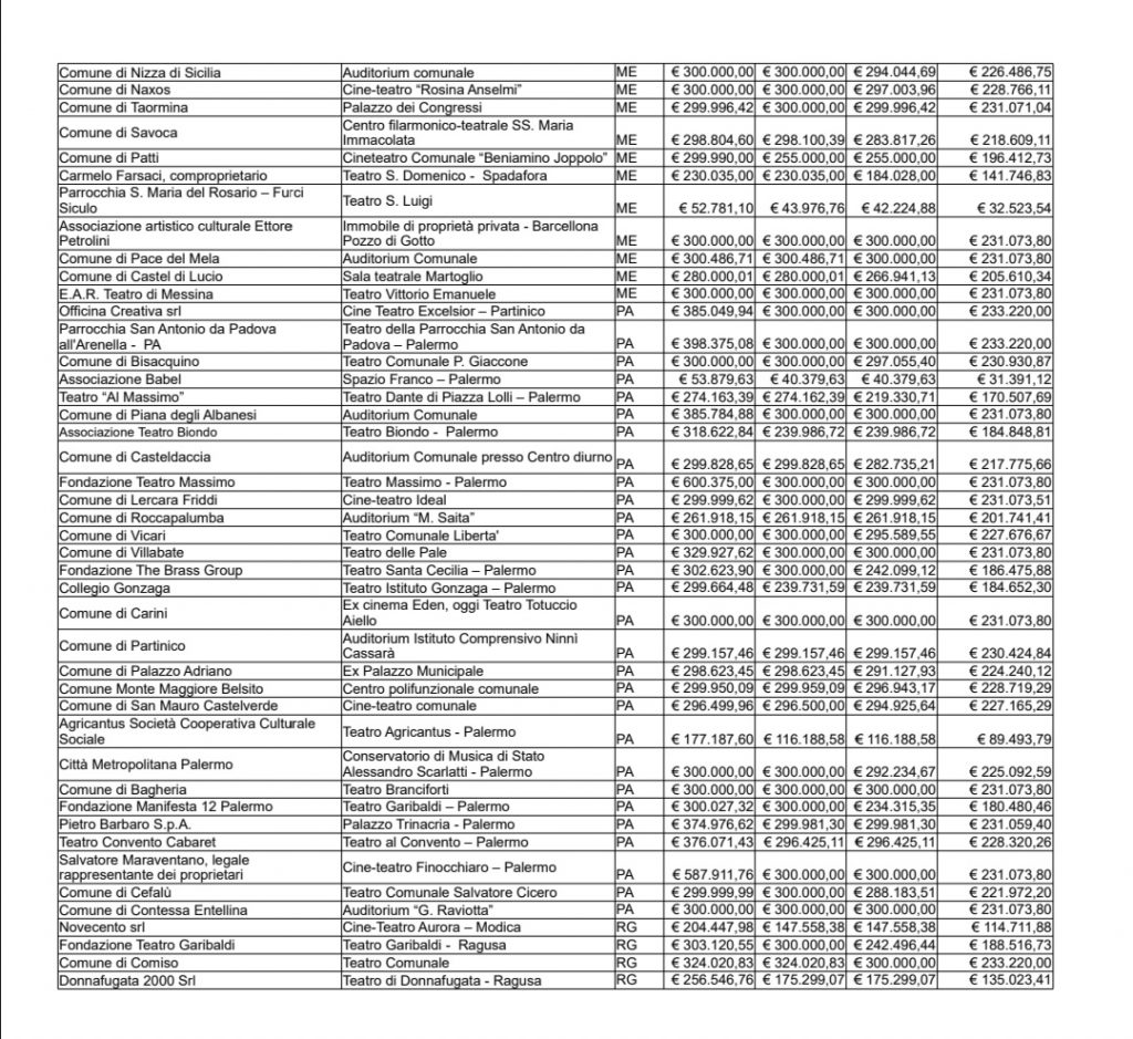 Qui di seguito, infine, vi proponiamo la graduatoria dei teatri, grandi e piccoli che la Regione ha deciso di finanziare.