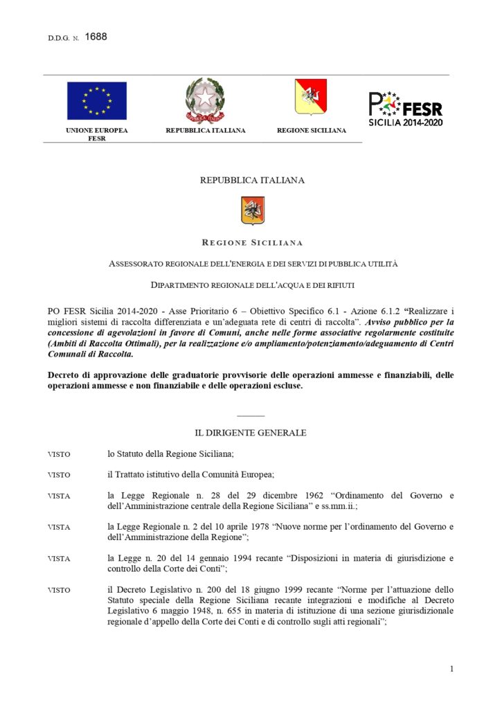 L’intervento da 21,4 milioni di euro della Regione Sicilia, inserito all’interno della misura 6.1.2 del Po Fesr 2014-2020, e’ stata voluta fortemente dal governo Musumeci per potenziare la raccolta differenziata e aiutare gli enti locali nella gestione del servizio.