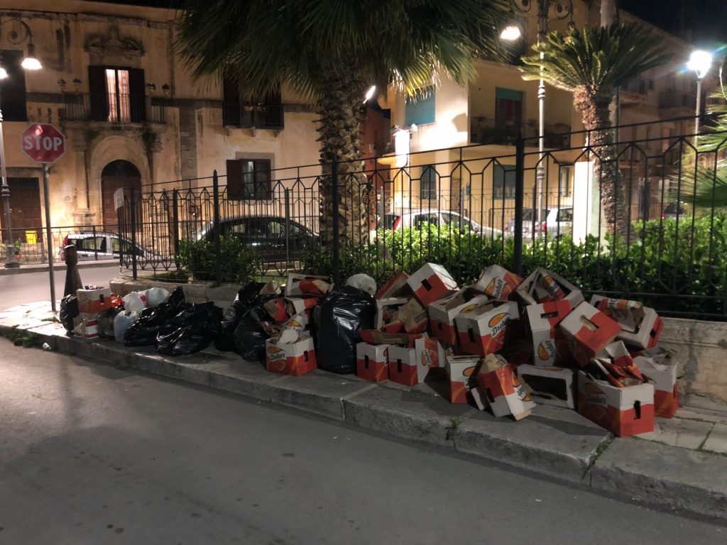 Ma dopo lo spettacolo gia’ indecoroso dei sacchi di oggi in mostra, c’e’ chi stasera ha deciso di imbruttire ancora un angolo di Sciacca abbandonando decine e decine di scatoloni di una nota birra.