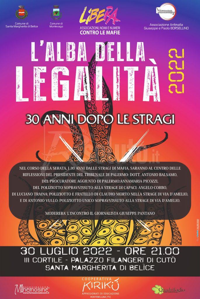 Sabato 30 luglio, presso il 3° cortile del palazzo Filangeri di Cutò a Santa Margherita Belice, si terrà “L’Alba della Legalità, 30 anni dopo le stragi”.
