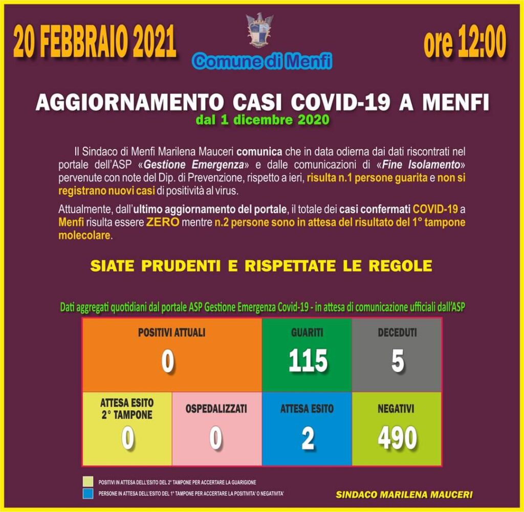 Ci sono voluti quasi due mesi per non avere più attuali positivi a Menfi dove tra fine del 2020 e inizio del nuovo era scoppiato un vero focolaio Covid. Oggi la cittadina torna Covid free. Accertata la guarigione anche dell’ultimo soggetto che risultava aver contratto il virus.