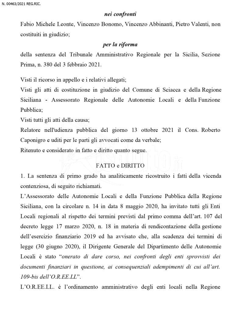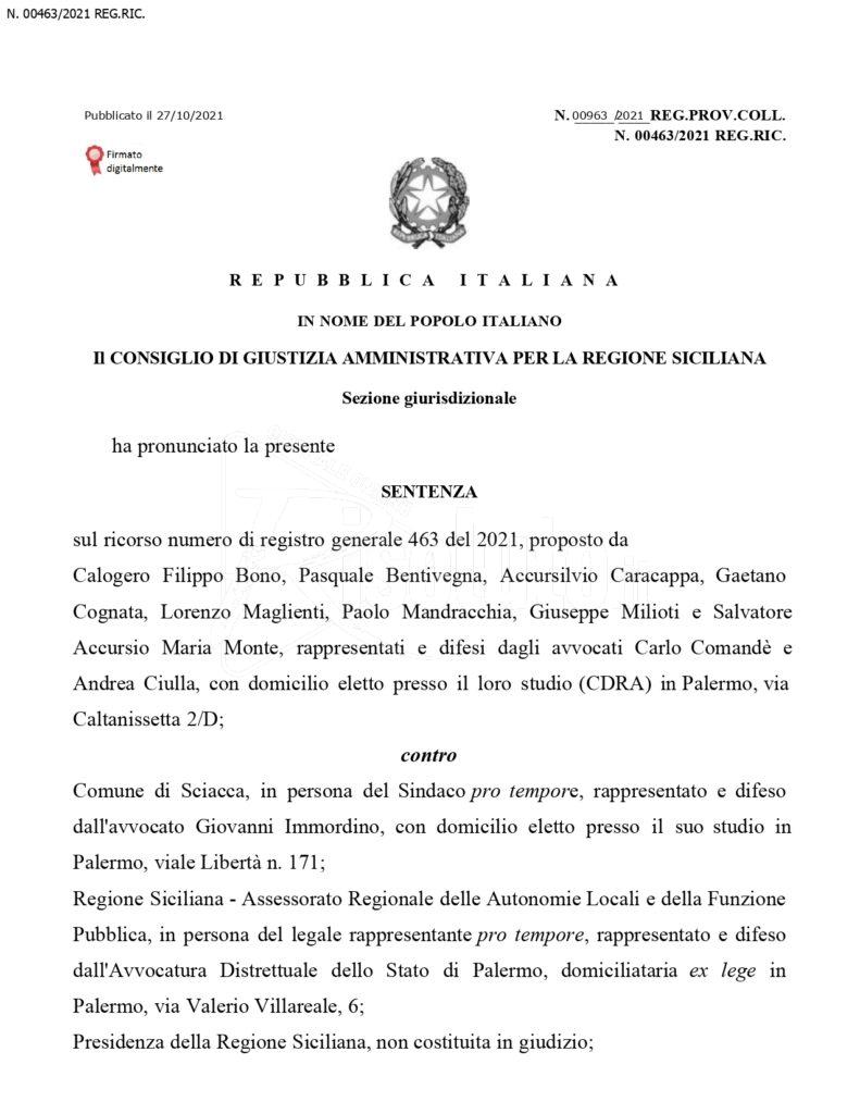 Il Consiglio di Giustizia Amministrativa ha respinto l’appello contro la sentenza del Tar per il ripristino del Consiglio comunale di Sciacca. Si pone cosi’ fine ad una vicenda che si conduce dallo scioglimento del consiglio comunale saccense.