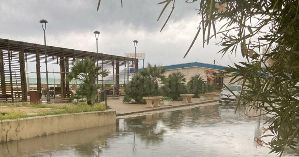 Durante le ultime ore, parte della strada risulta allagata. I pochi tombini non riescono a fare defluire la pioggia caduta nelle ultime ore.