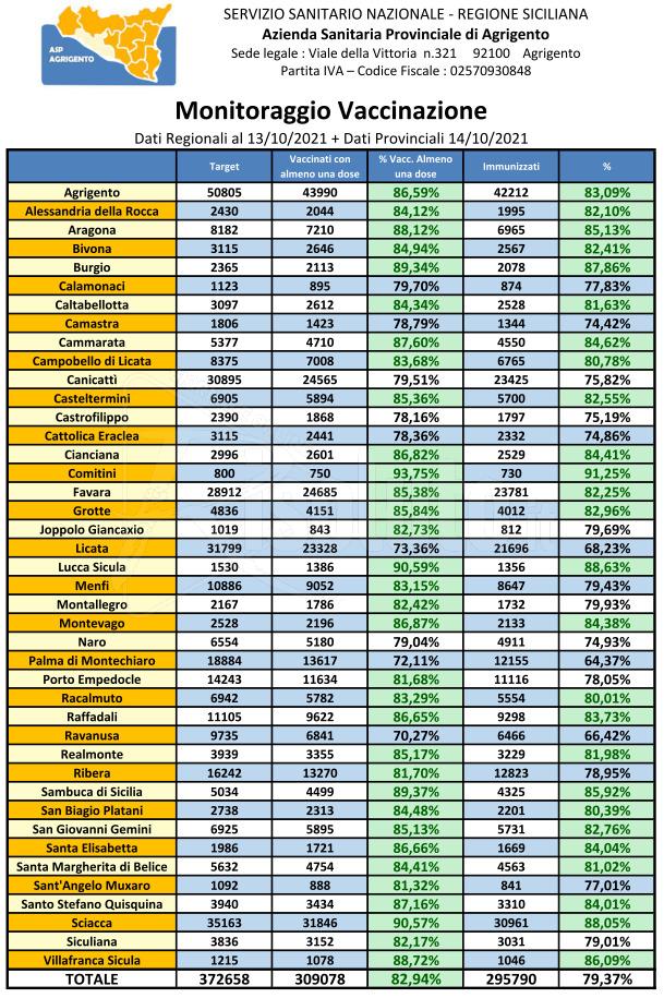 Il commissario Zappia nel suo consueto report settimanale, torna a porre l’attenzione sul rischio di nuove chiusure per i comuni di Palma, Licata e Ravanusa, i tre che registrano un numero di vaccinati al di sotto della media e della percentuale necessaria per l’immunita’.