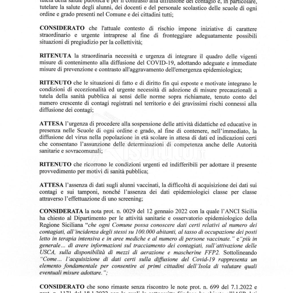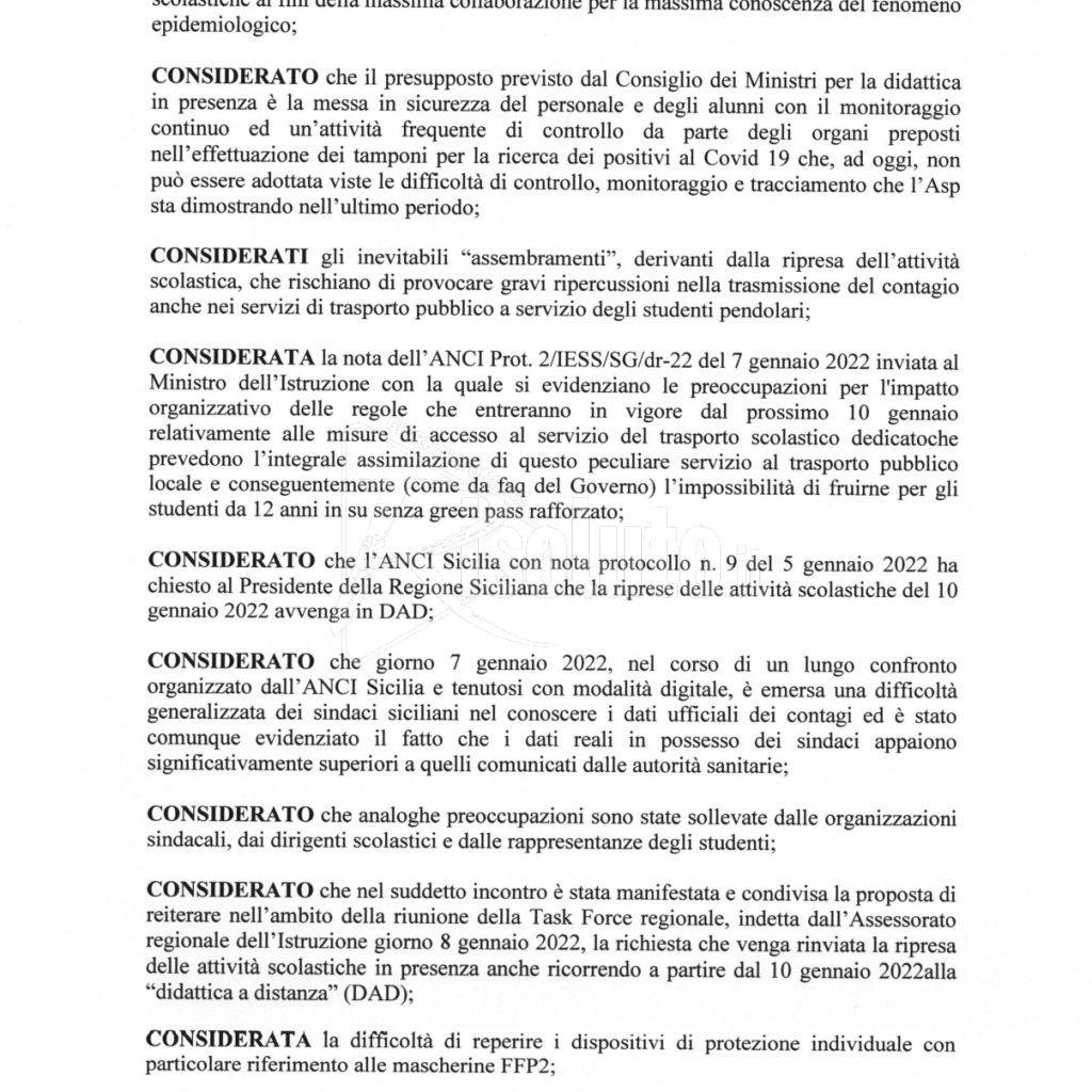“Abbiamo deciso – ha scritto Micciche’- al termine della riunione di ANCI Sicilia, di emanare ordinanza per sospendere le attività didattiche nelle scuole di ogni ordine e grado fino al 16 gennaio.