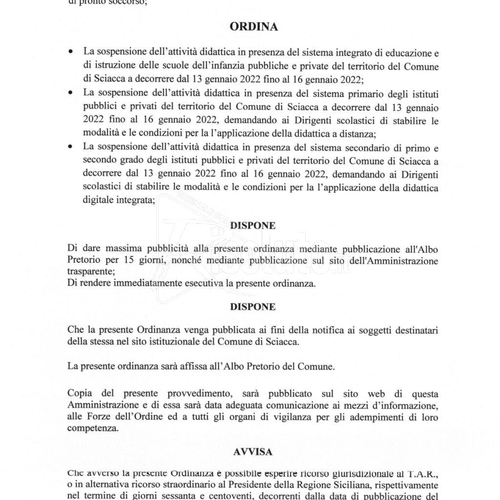 L’ordinanza sarà pubblicata sul sito del Comune di Agrigento. A breve in pubblicazione anche quella di Sciacca e Menfi. Scuole chiuse dunque, nei comuni dei sindaci ribelli.