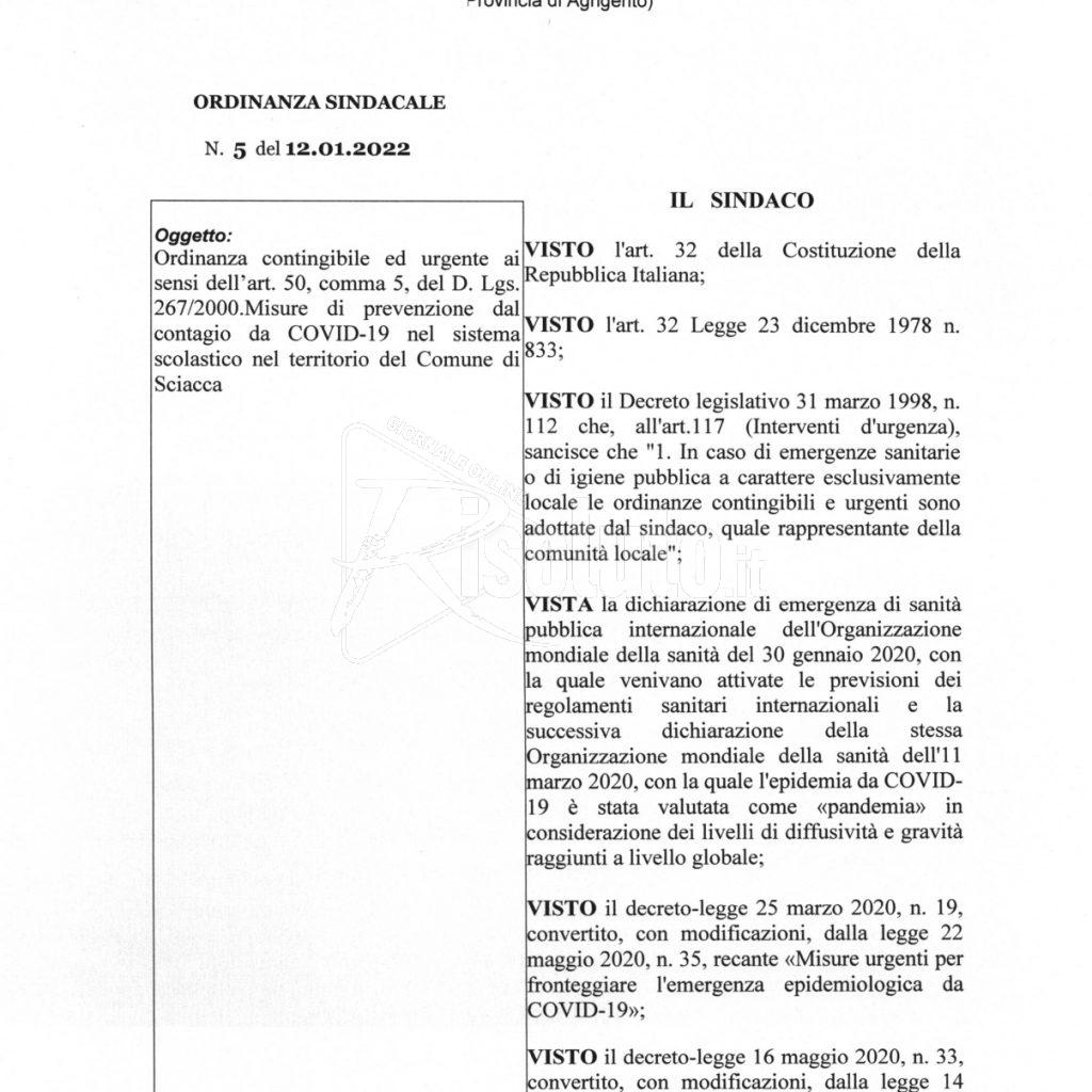 L’ordinanza sarà pubblicata sul sito del Comune di Agrigento. A breve in pubblicazione anche quella di Sciacca e Menfi. Scuole chiuse dunque, nei comuni dei sindaci ribelli.