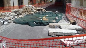 Al momento, la via Gerardi è ancora un cantiere. L’intervento è iniziato qualche giorno fa da parte di Girgenti Acque, ma stamattina nel cantiere non c’era alcun operaio al lavoro. Si attendono, a quanto pare, l’arrivo del materiale. Lo scavo di qualche metro che è stato effettuato è completamente aperto ed è stato ricoperto da assi di legno e un telone. Tuttavia il cattivo odore che fuoriesce dallo scavo, crea disagi alle attività poste nelle vicinanze.