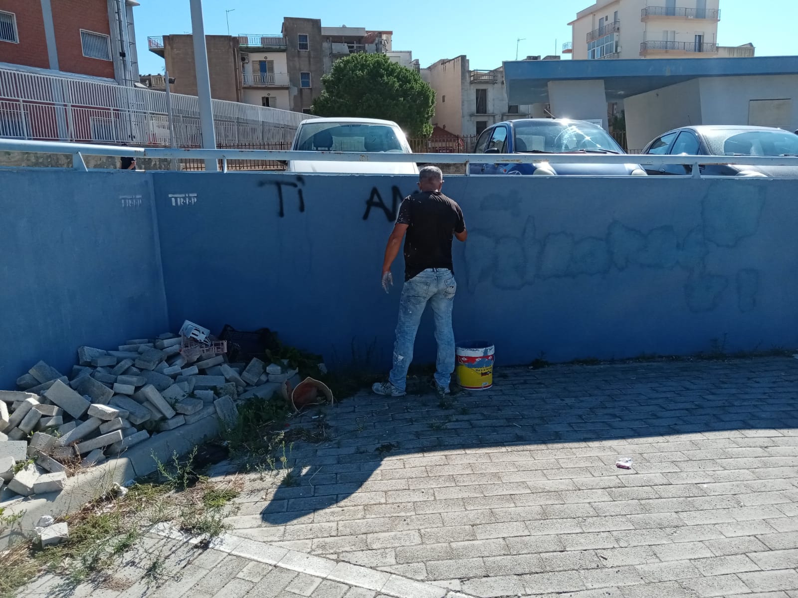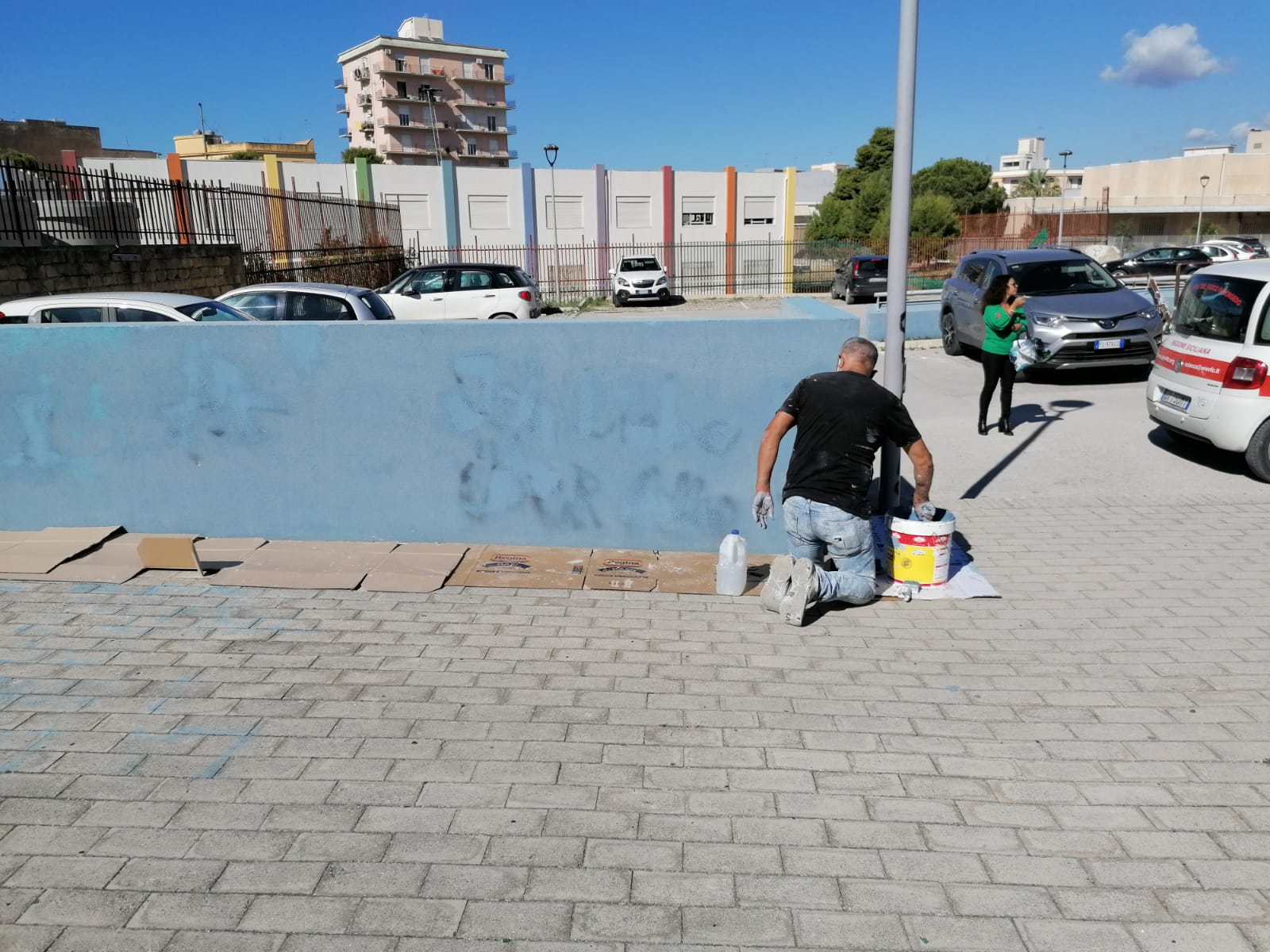 I volontari hanno così cancellato i segni del degrado in cui versa la zona per il parcheggio vicino anche a degli edifici scolastici.