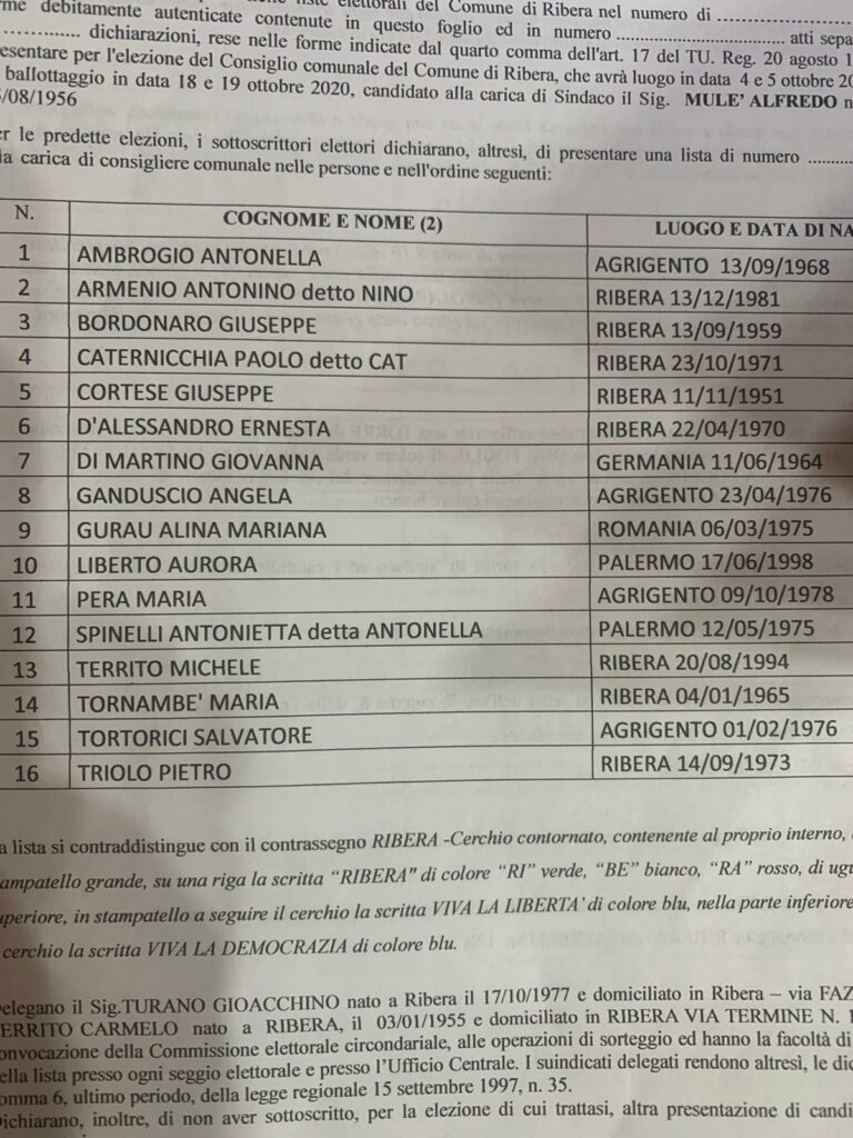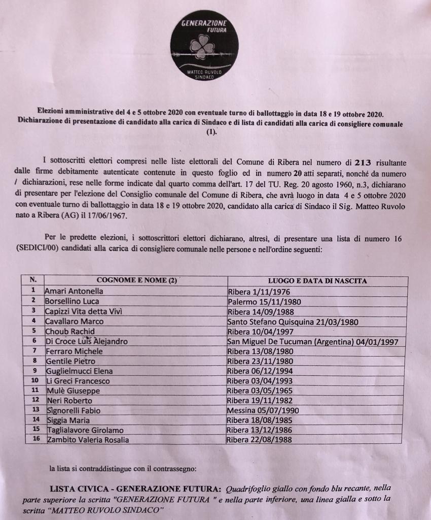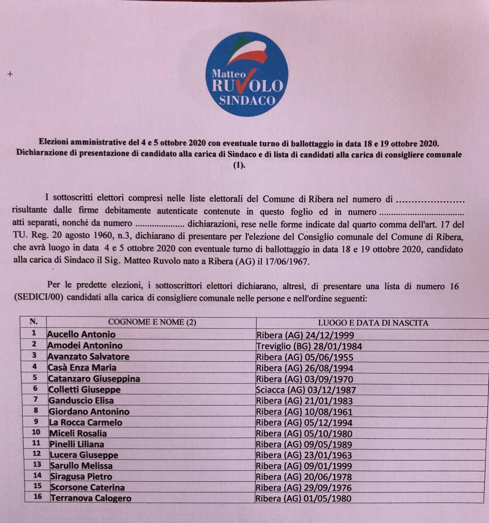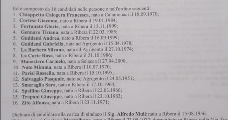 Si respira gia’ aria da campagna elettorale a Ribera dove oggi sono scaduti i termini per la presentazione delle liste. I cinque candidati per la poltrona di primo cittadino, hanno depositato anche le liste che appoggiano la loro candidatura con gli aspiranti al consiglio comunale.