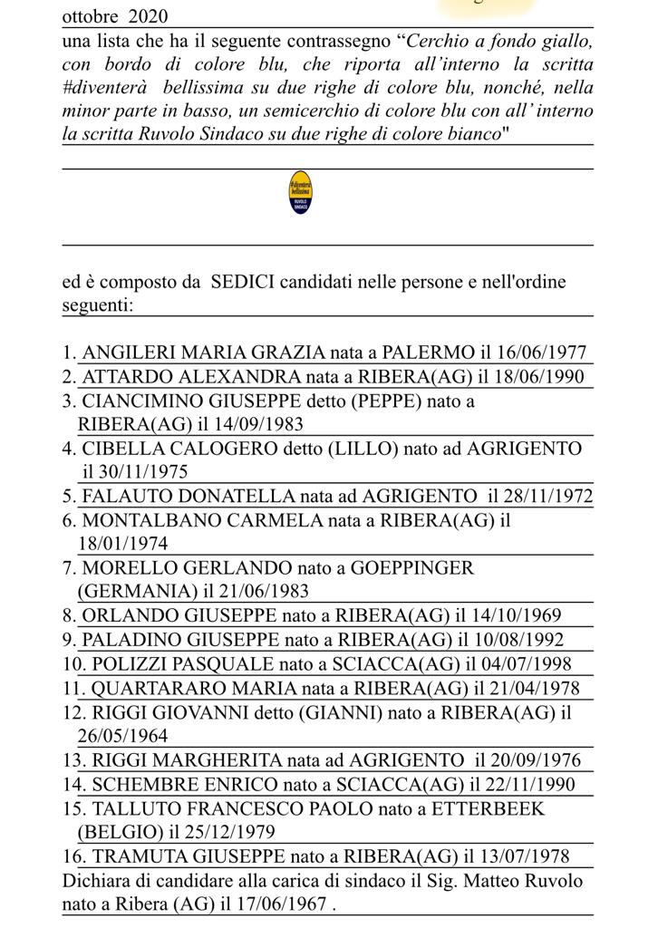 Ecco i candidati sindaco e le liste che lo sostengono (L’ordine e’ dato soltanto dal recepimento delle informazioni nella nostra redazione).