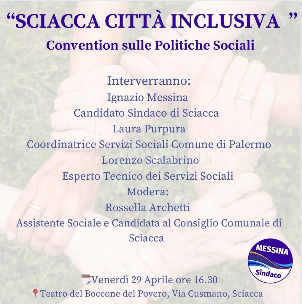 Giorno 29 aprile alle ore 16.30 presso il teatro del Boccone del Povero, si terrà una convention sulle politiche sociali, organizzata da Rossella Archetti, esperto tecnico dei servizi sociali e candidata nella lista “Messina Sindaco”.