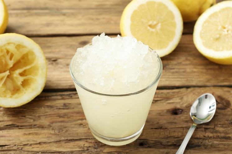 Spremere il succo dei limoni in una ciotola. Unire l’acqua, ancor meglio se precedentemente bollita, e lo zucchero e mescolare fino a far sciogliere completamente lo zucchero. Dopodichè mettere il composto in un contenitore coperto per il freezer e lasciarlo a congelare per almeno 6 ore mescolando ogni mezz’ora (per 2-3 volte) in modo da non farlo cristallizare. Una volta ghiacciata basterà prelevare la granita semplicemente grattandola con una forchetta o, in alternativa, tagliare dei cubetti e metterli per qualche secondo nel frullatore.